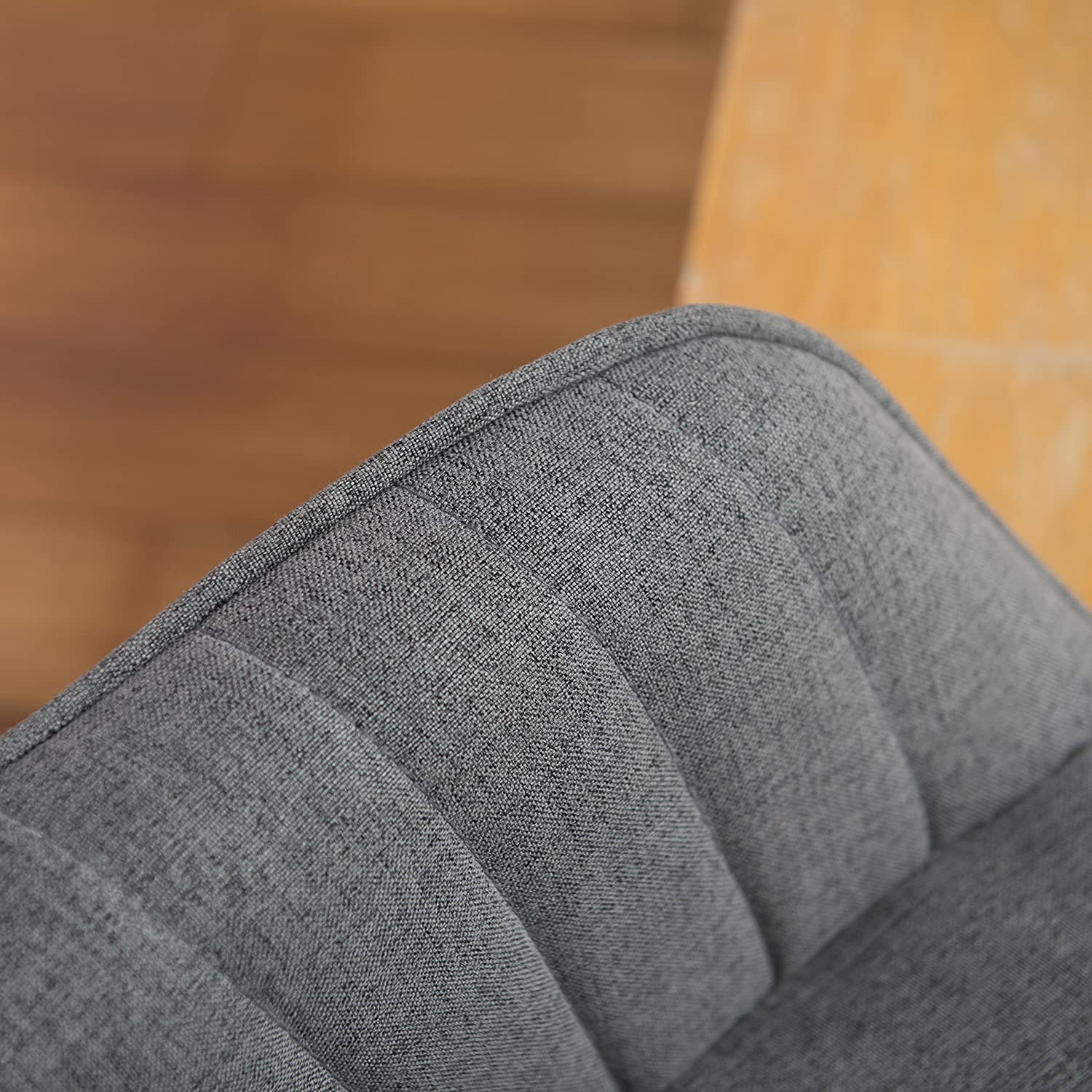 - Mid-Century modern style and gray perfect match the most home decor, four beech Wood Legs finished with natural wood color extend outward from the swivel base. Upholstered in high-quality polyester-cotton fabric, exquisite tailoring with a design worth remembering.